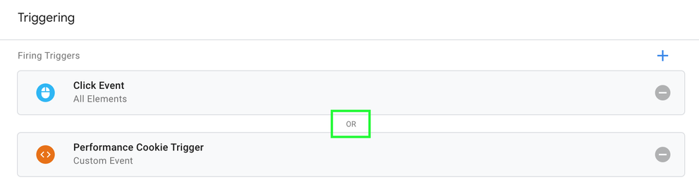 We want the OneTrust cookie category id triggers that you create or upload to be applied to your existing tags in such a way that the OneTrust trigger is the limiting factor to the tag firing. This can be done in several different ways. Three different ways are outlined below.
